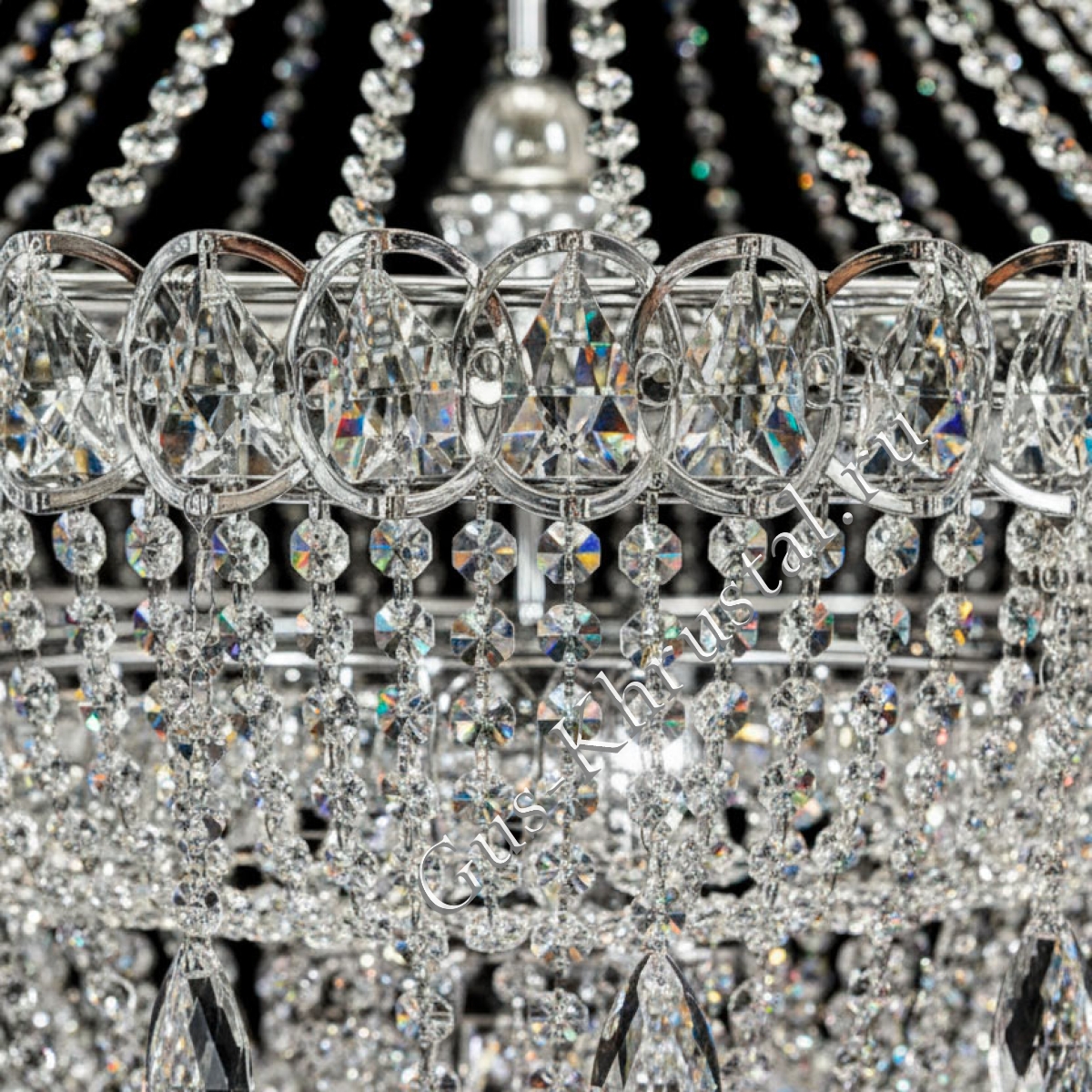 Из такого плана люстр, которые можно повесить под высокий потолок - эта лучше всего. Она стоит не так дорого и выглядит отлично. Никто не верит, что она стоит чуть больше 20 тысяч.